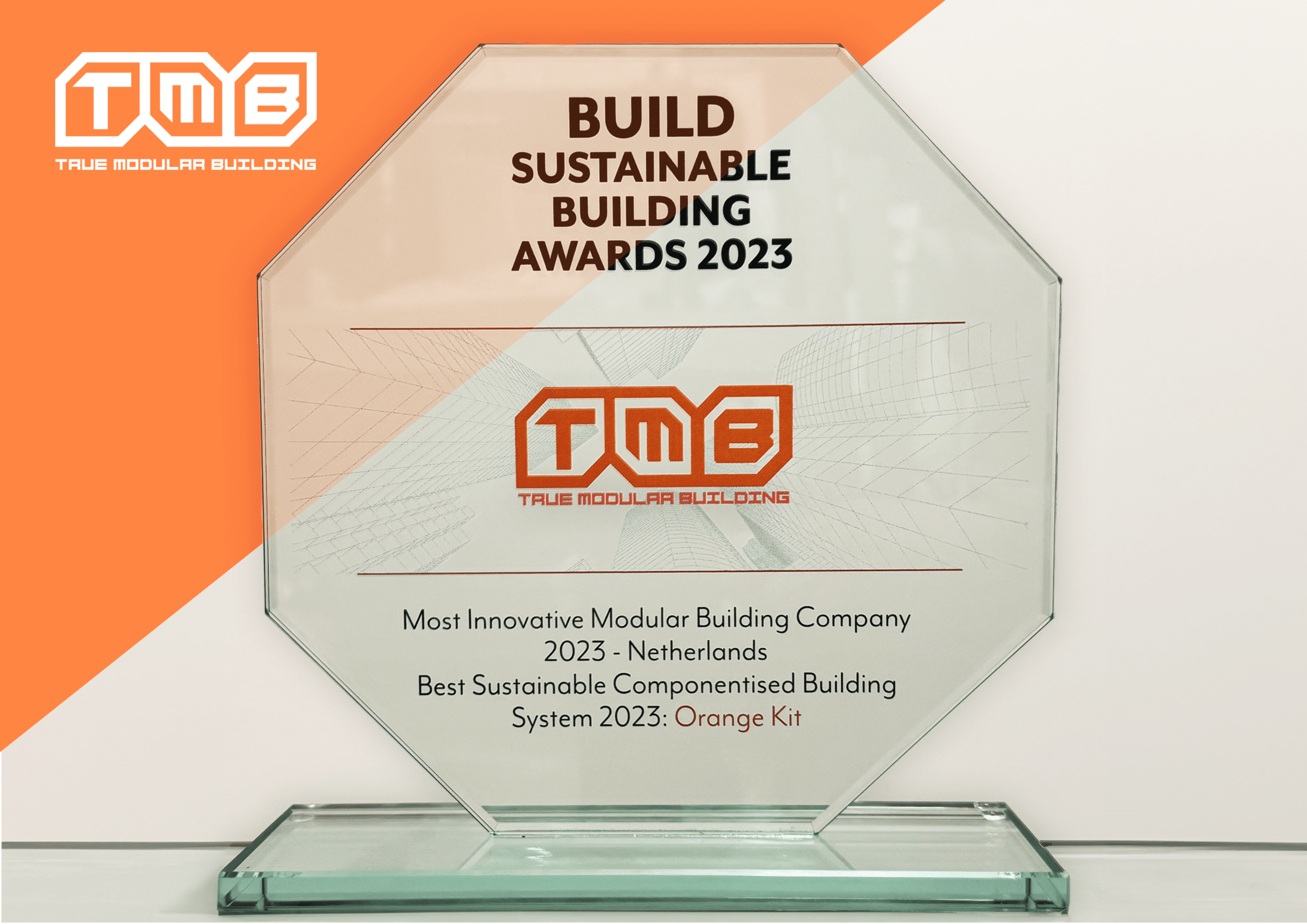 We are deeply honored to have receive from BUILD the Sustainable Building Award 2023 for the categories: Most Innovative Modular Building Company Netherlands and Best Sustainable Componentised Building System – Orange Kit.