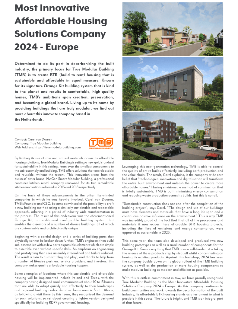 Most Innovative Affordable Housing Solutions Company 2024 – Europe